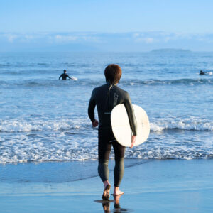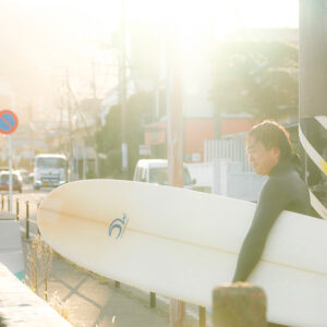 湯河原・吉浜海岸でサーフィン。