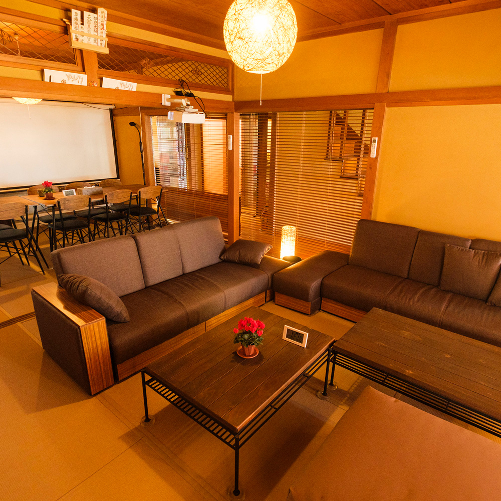 ※『Surf Republic 湯河原 吉浜海岸』では、交流の場として「母家1F大広間」「離れ2F団欒室」や「1階テラス」を用意しています。