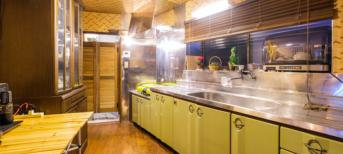 冷蔵庫、電子レンジ、炊飯器、テーブルトップ型BBQガスコンロ、鍋用コンロ、ネスカフェ・ドルチェグスト、食器類、食器乾燥機、浄水器