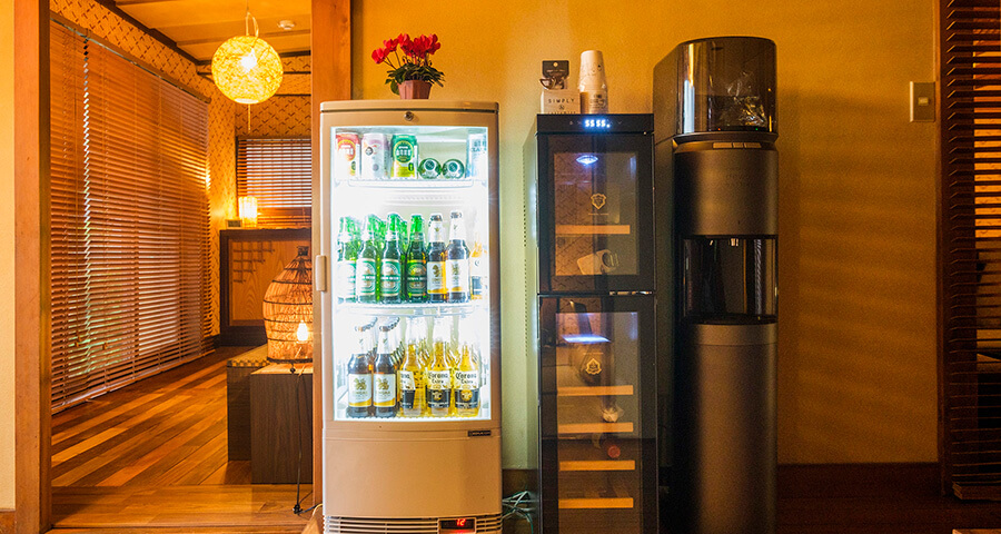 給湯機能付きウォーターサーバー、冷蔵庫、電子レンジ
