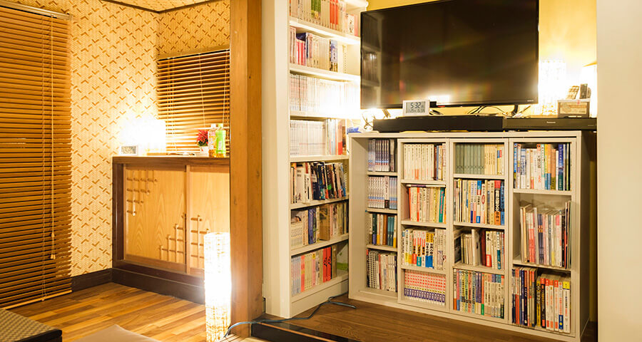 ●ラウンジ:12畳エアコン、ソファベッド4台、TV