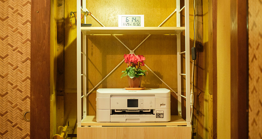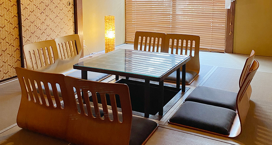6畳エアコン、TV,無線LANルーター、WiFi対応プリンター、掘りごたつ、座椅子8、エアベッド3