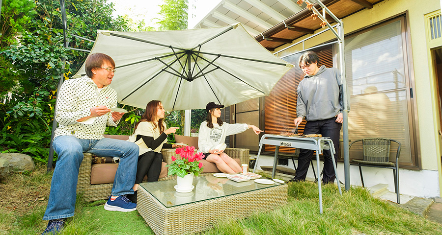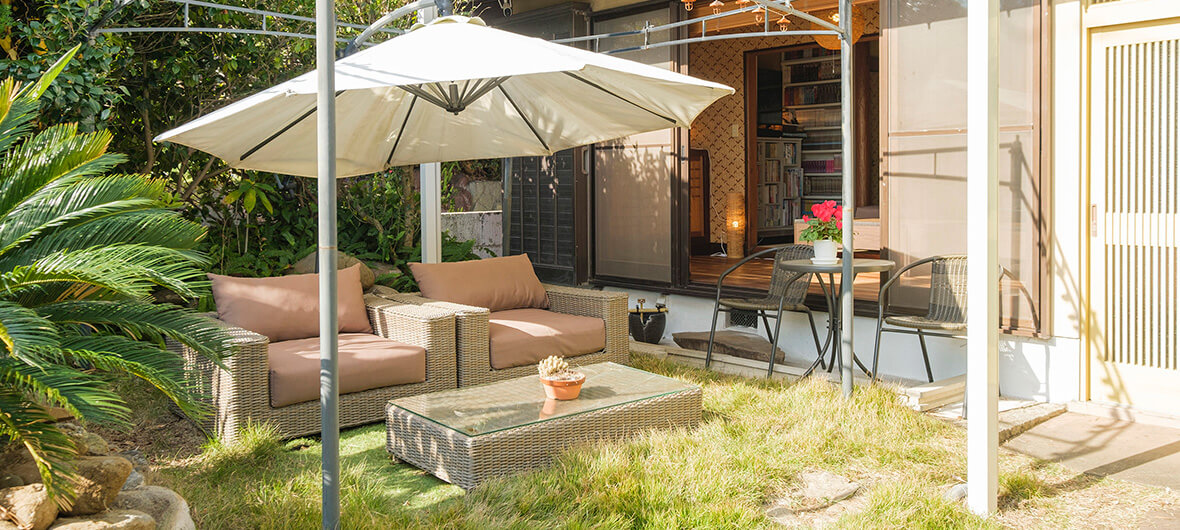 ガーデンソファ、ガーデンテーブル、ガーデンパラソル